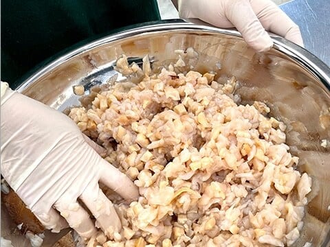市場にほとんど出回らない大粒の平貝(タイラギ)を使用。 日本で唯一無二の平貝チャンジャは、海神丸でしか味わえません。