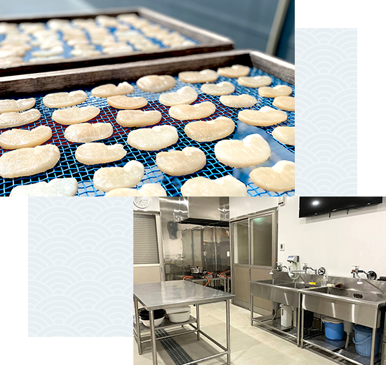 漁から加工、販売までを自社一貫管理。 品質・衛生管理を徹底し、安心・安全で美味しい海産物を全国へ届けます。